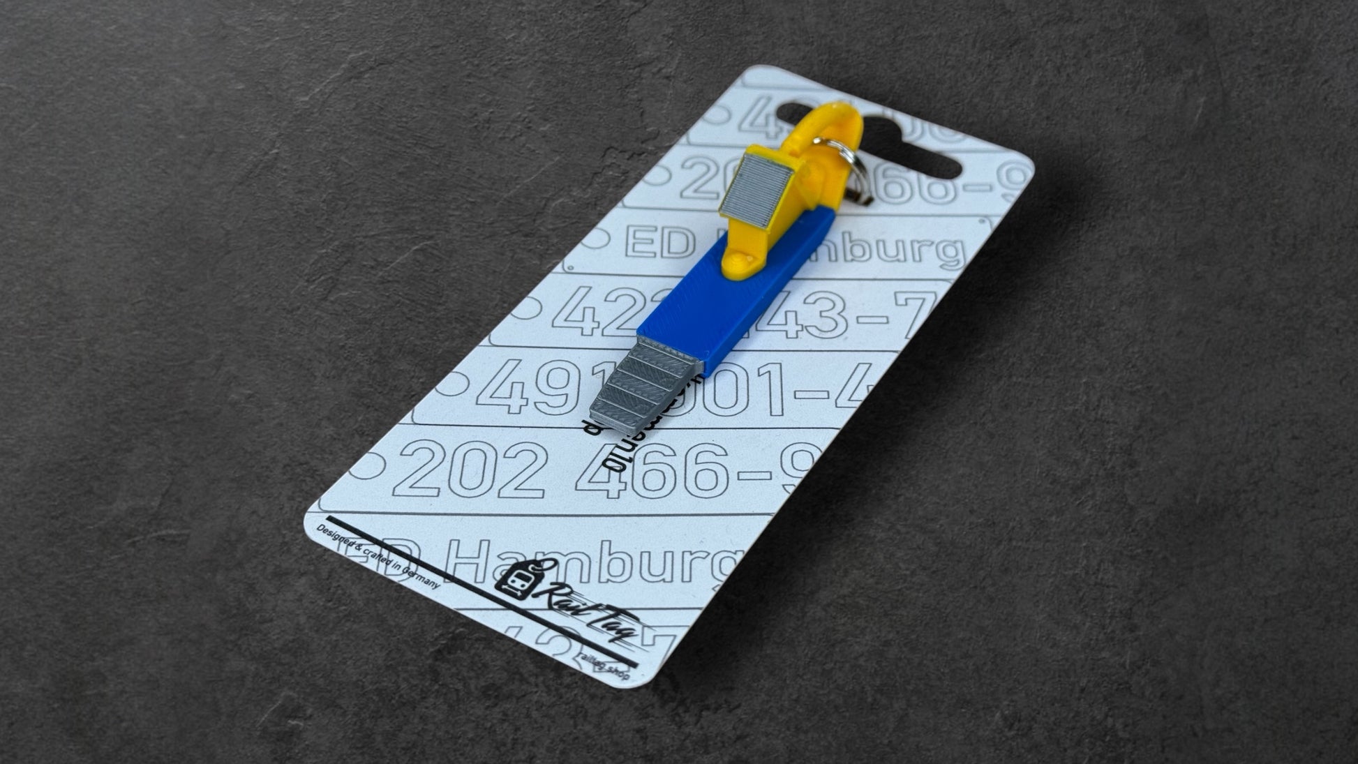 This detailed keychain in the shape of a classic railway brake shoe is the perfect accessory for railway enthusiasts and collectors. It combines nostalgic railway history with modern 3D printing technology.